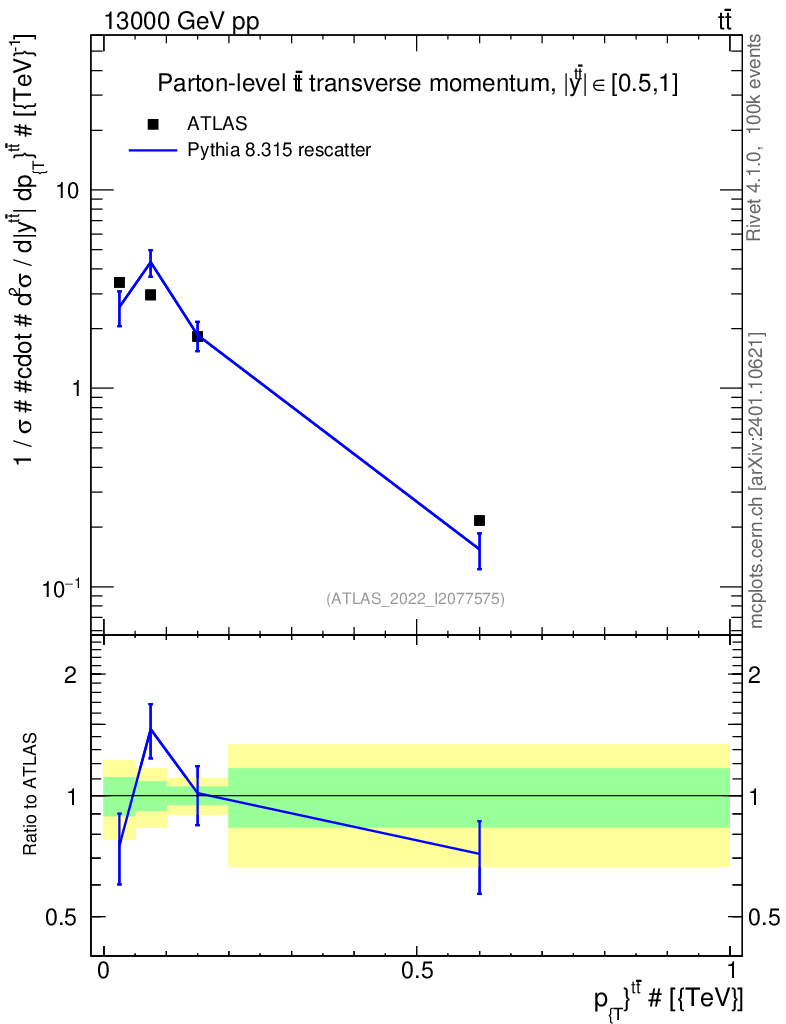Lines: data, pythia8 8.315 rescatter |