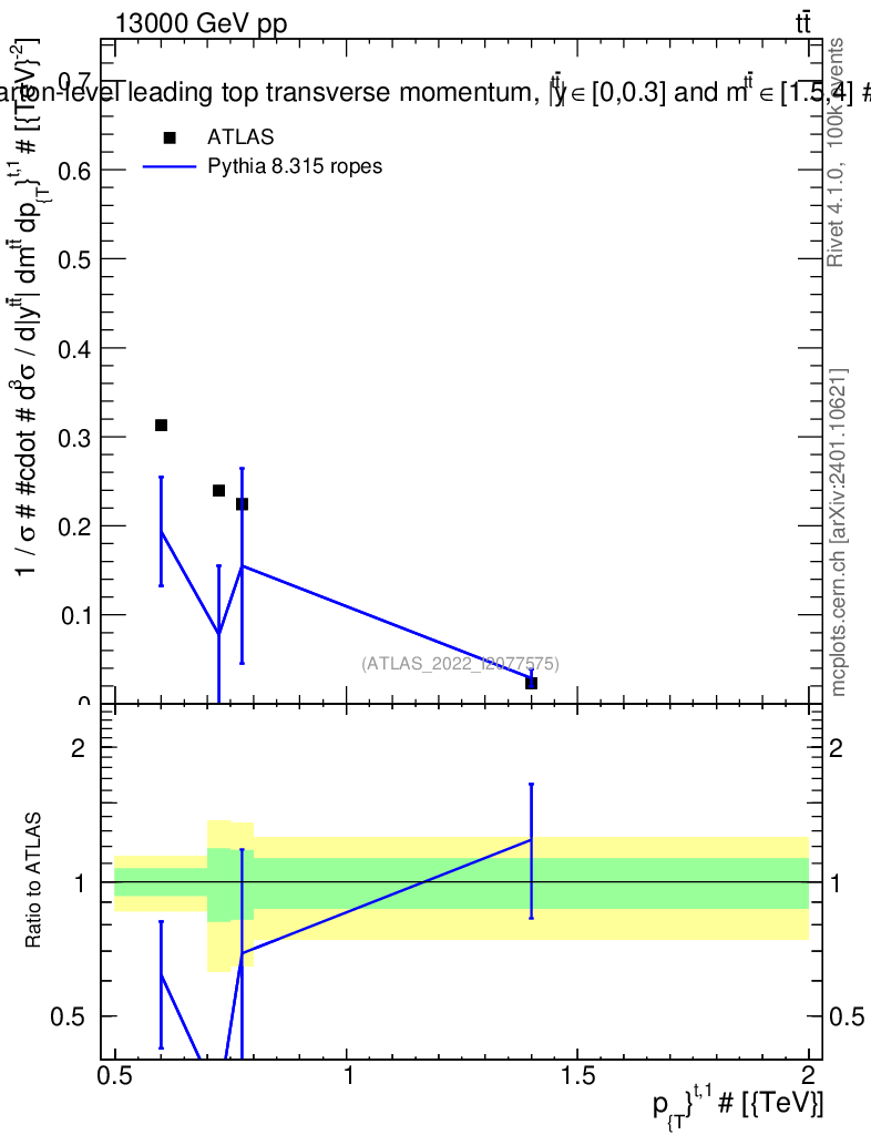 Lines: data, pythia8 8.315 ropes |