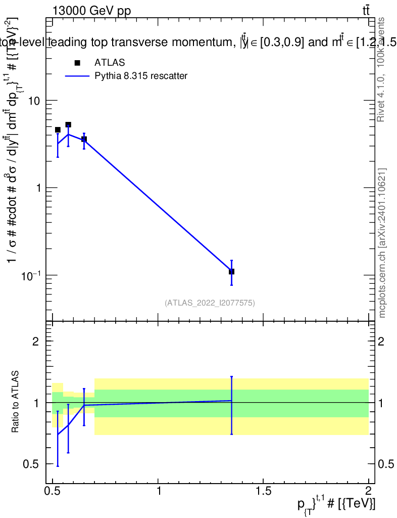 Lines: data, pythia8 8.315 rescatter |