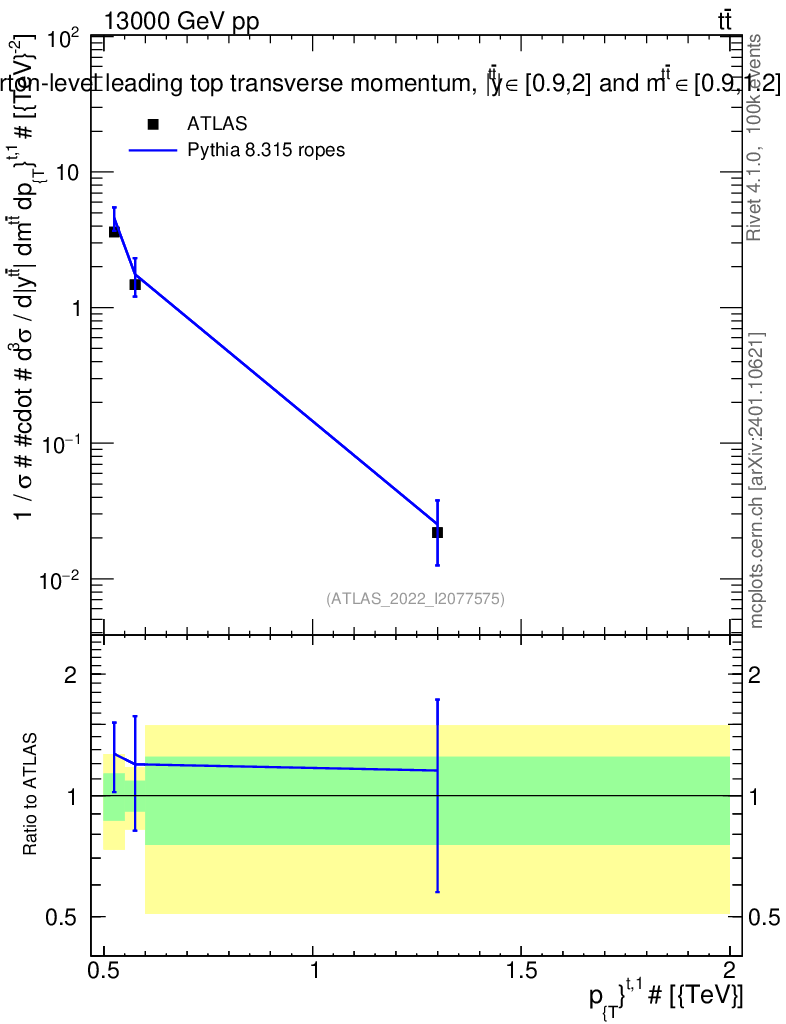 Lines: data, pythia8 8.315 ropes |