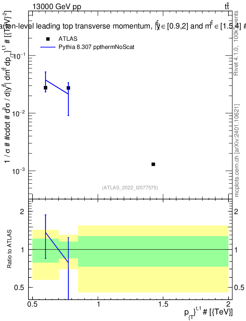 Lines: data, pythia8 8.307 ppthermNoScat |