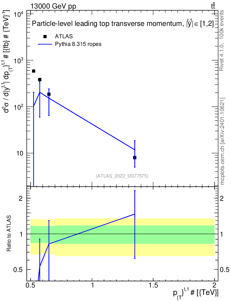Lines: data, pythia8 8.315 ropes |