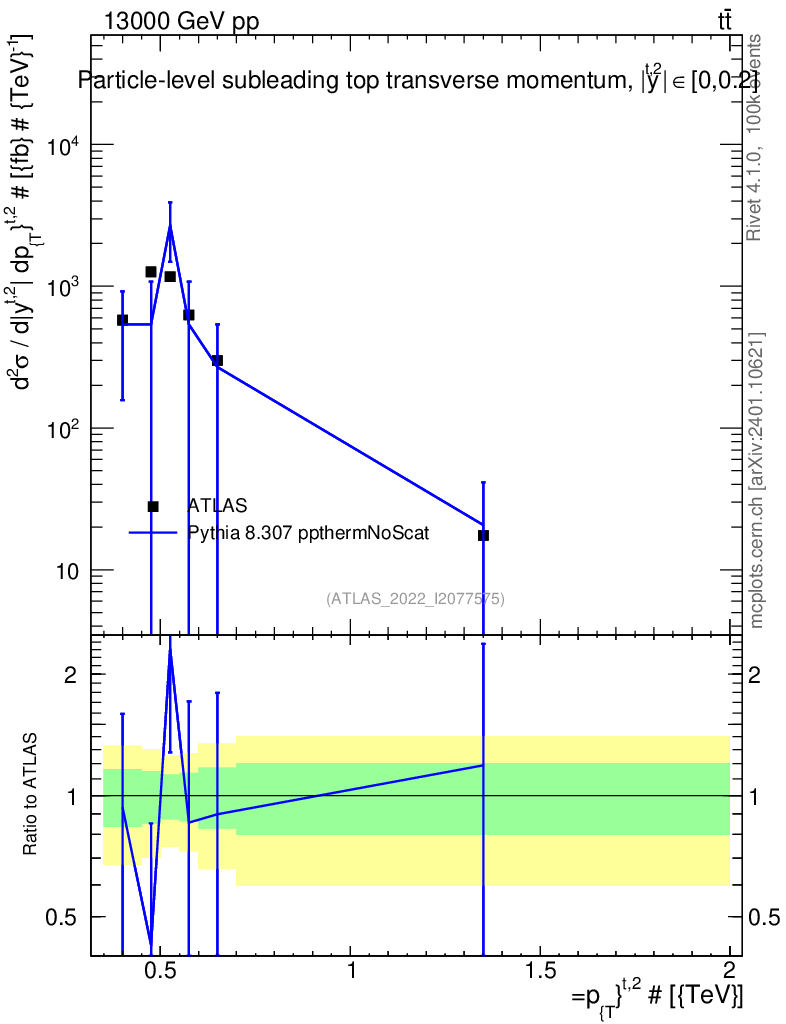 Lines: data, pythia8 8.307 ppthermNoScat |