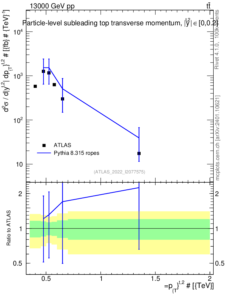 Lines: data, pythia8 8.315 ropes |
