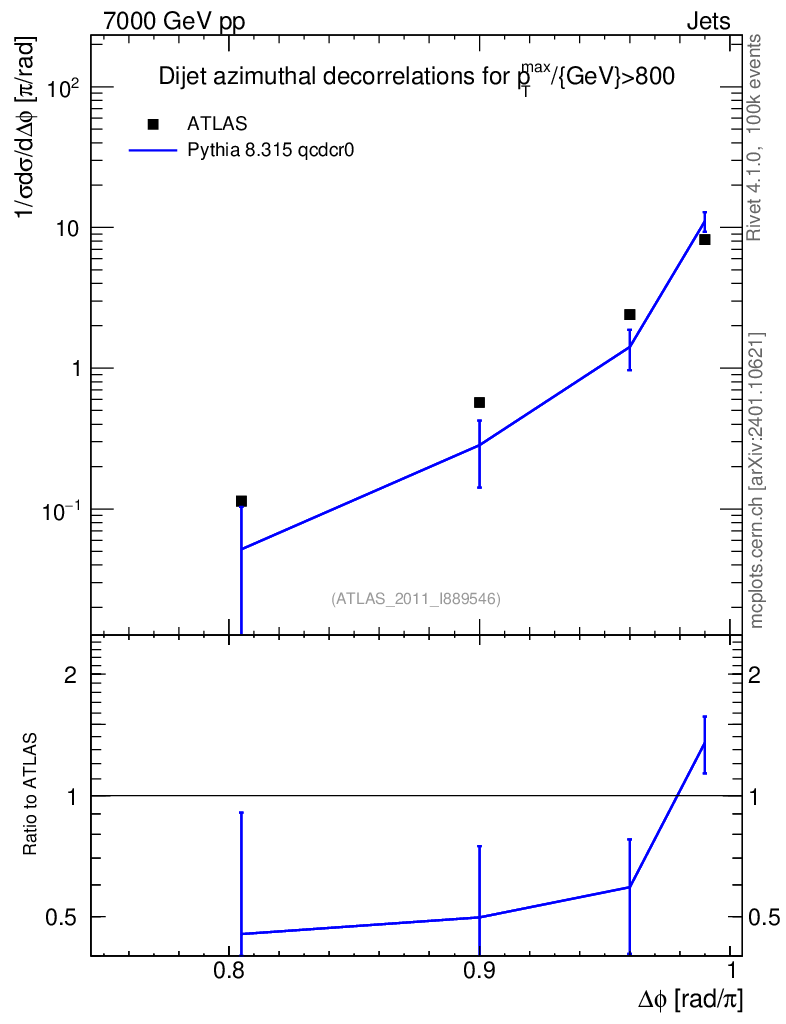 Lines: data, pythia8 8.315 qcdcr0 |