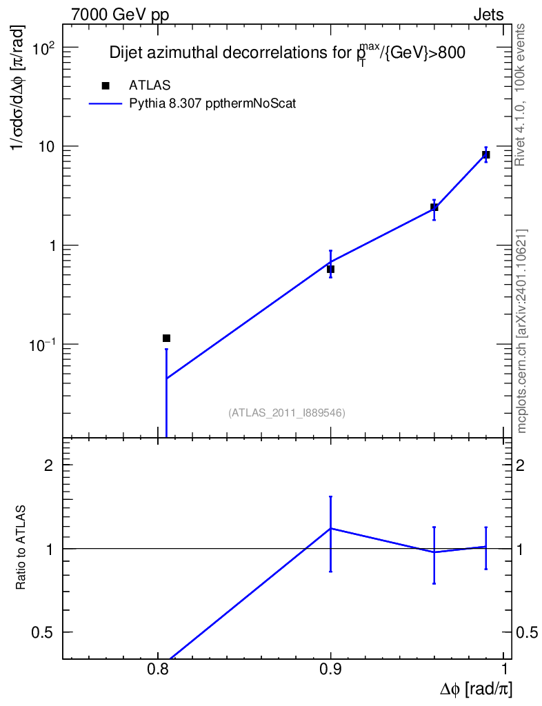 Lines: data, pythia8 8.307 ppthermNoScat |