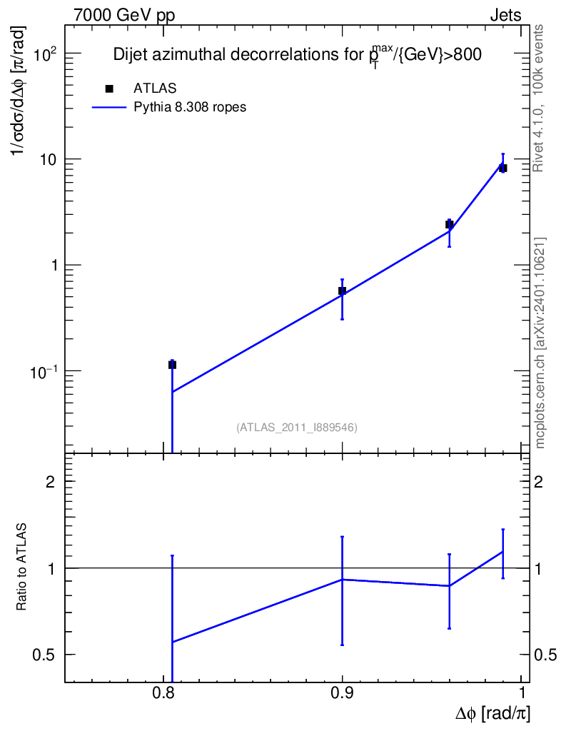 Lines: data, pythia8 8.308 ropes |