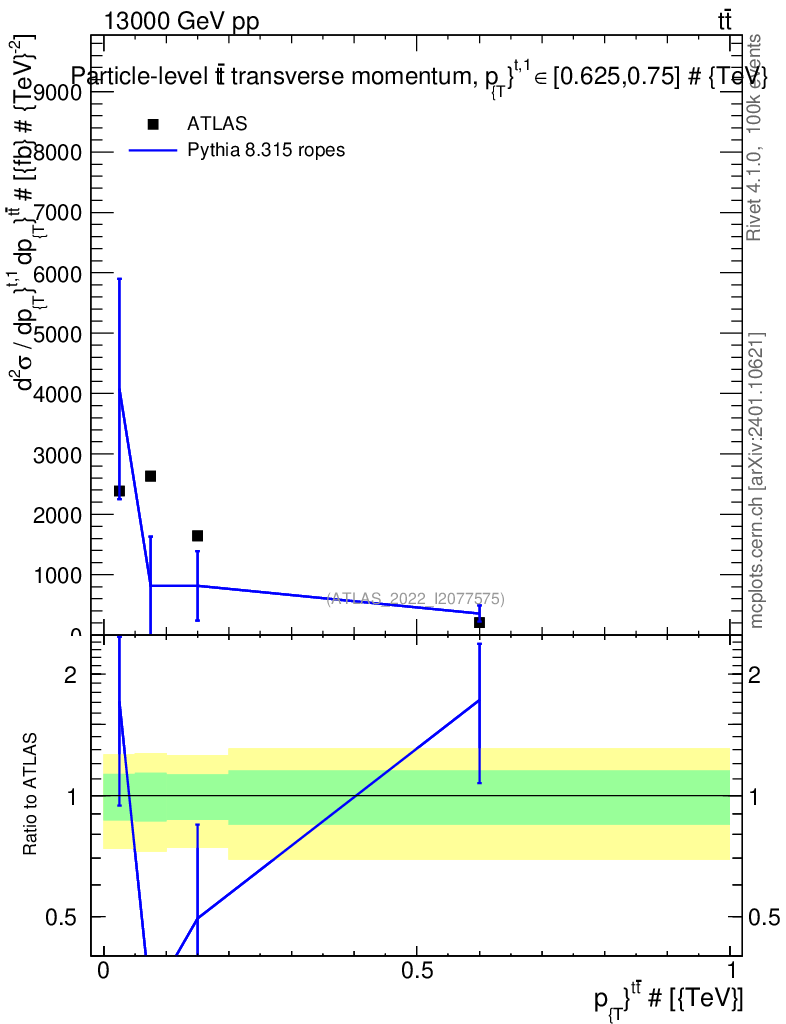 Lines: data, pythia8 8.315 ropes |