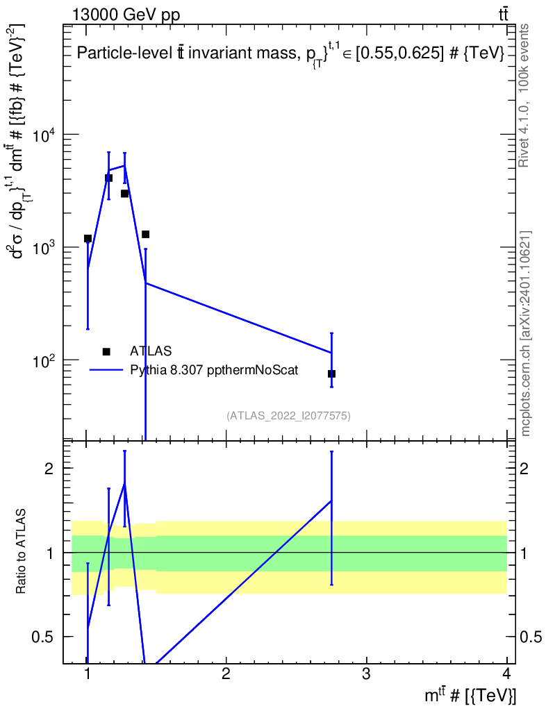 Lines: data, pythia8 8.307 ppthermNoScat |