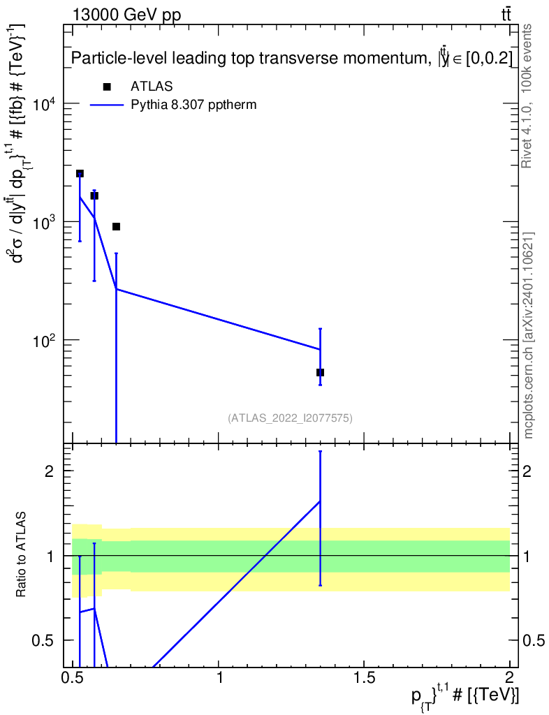 Lines: data, pythia8 8.307 pptherm |
