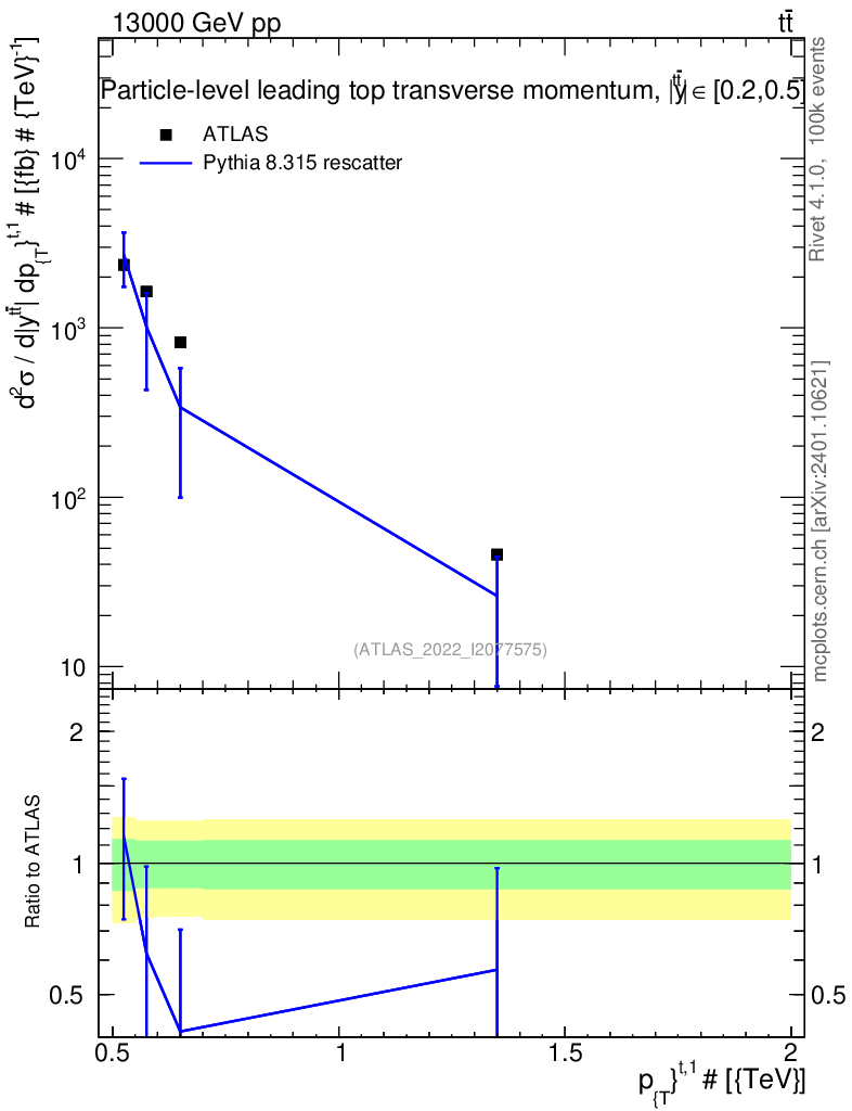 Lines: data, pythia8 8.315 rescatter |