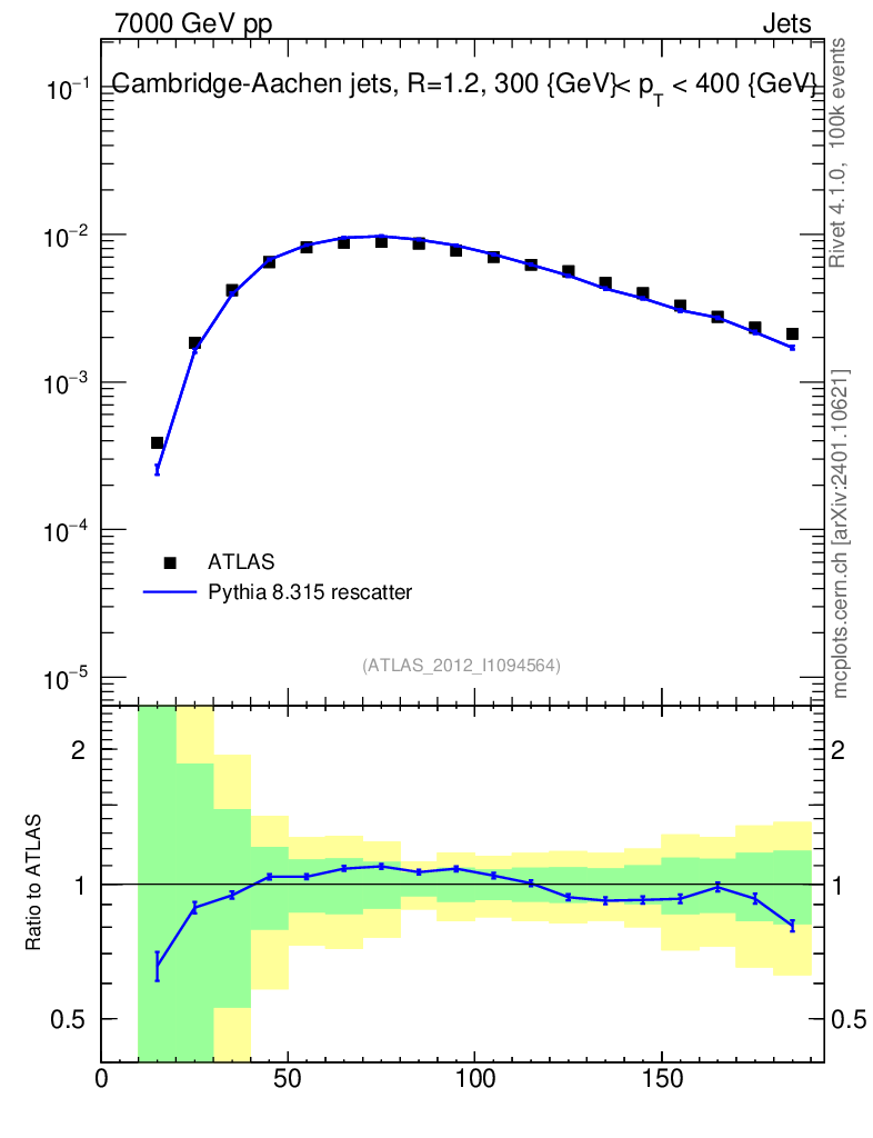 Lines: data, pythia8 8.315 rescatter |