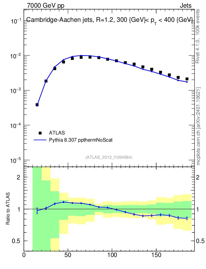 Lines: data, pythia8 8.307 ppthermNoScat |