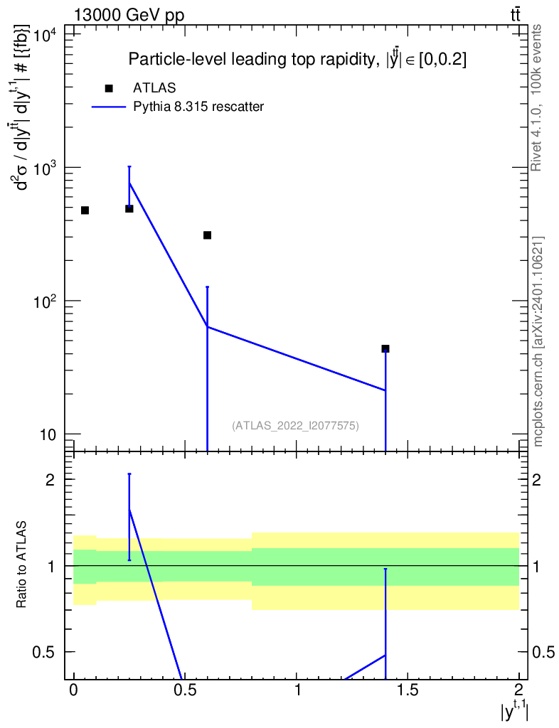 Lines: data, pythia8 8.315 rescatter |