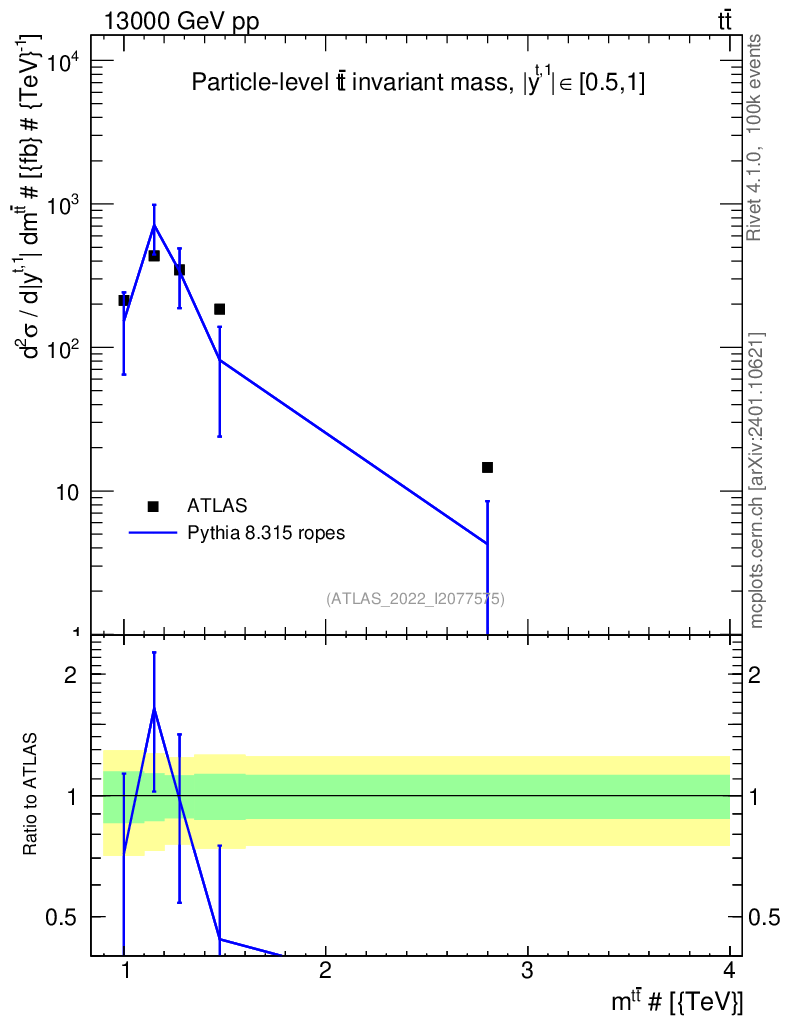 Lines: data, pythia8 8.315 ropes |