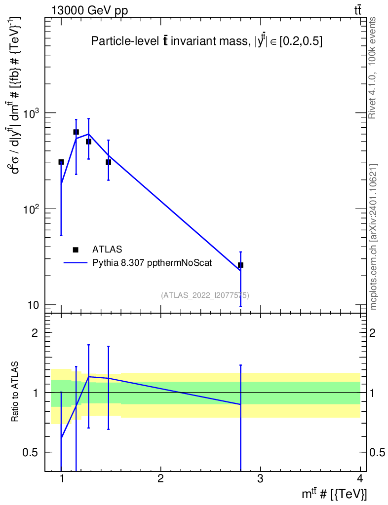 Lines: data, pythia8 8.307 ppthermNoScat |