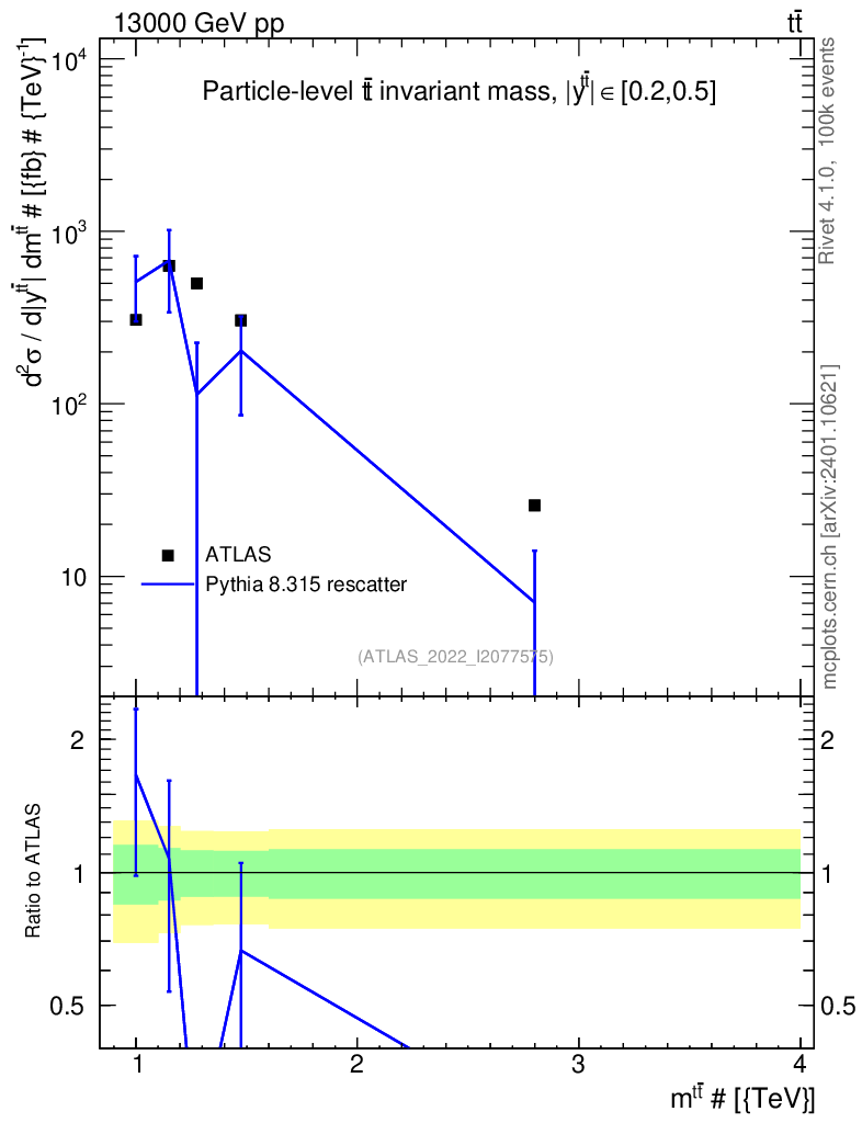 Lines: data, pythia8 8.315 rescatter |