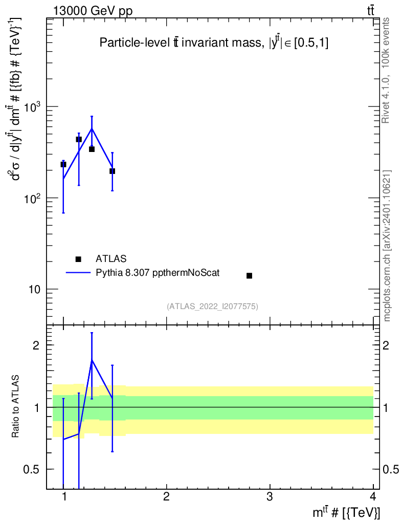 Lines: data, pythia8 8.307 ppthermNoScat |