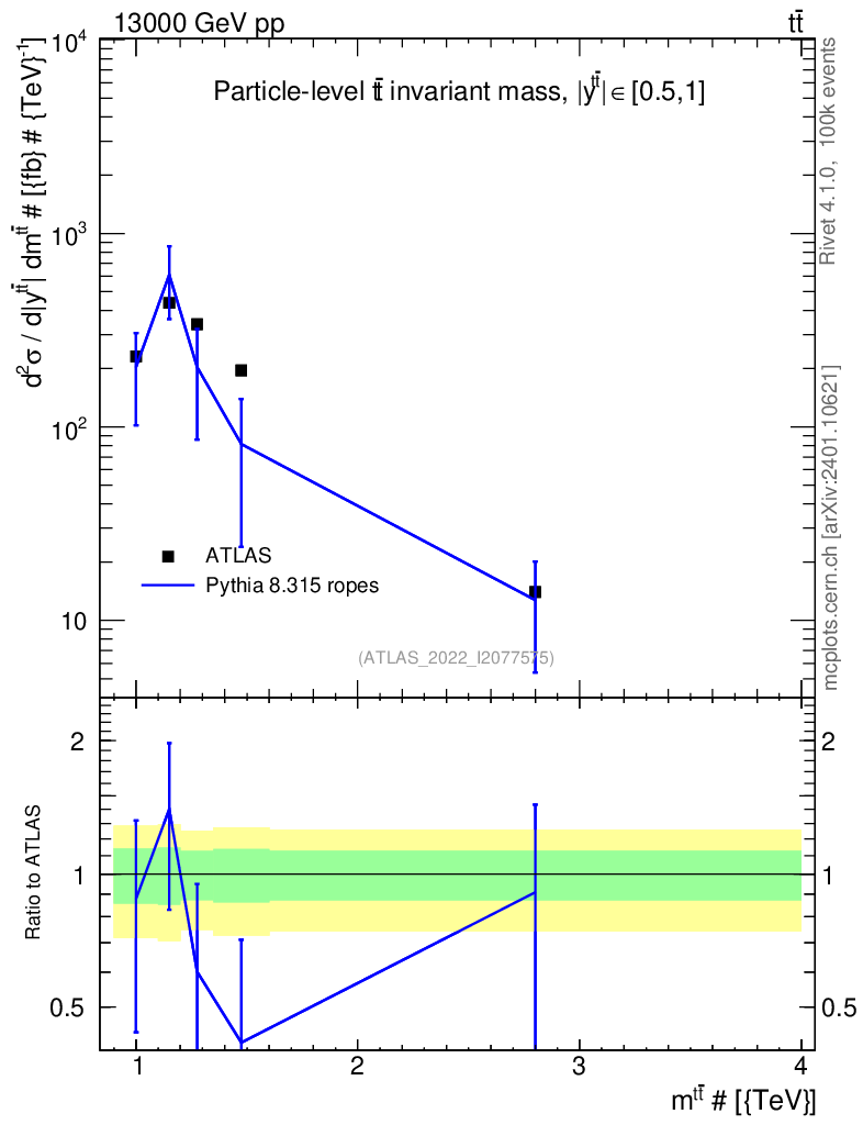 Lines: data, pythia8 8.315 ropes |