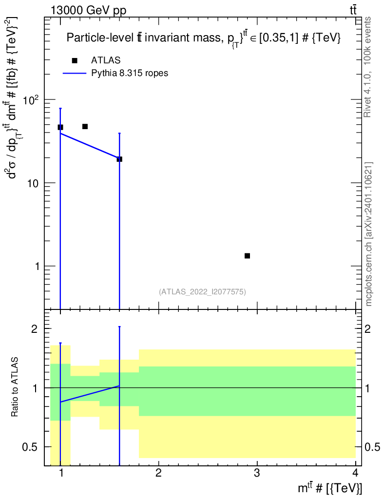Lines: data, pythia8 8.315 ropes |