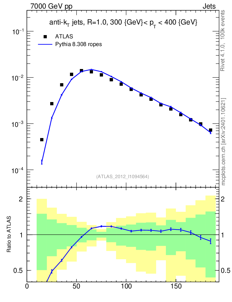 Lines: data, pythia8 8.308 ropes |