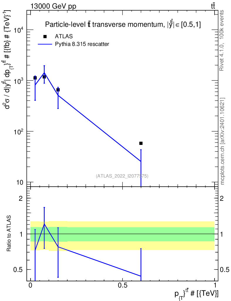 Lines: data, pythia8 8.315 rescatter |