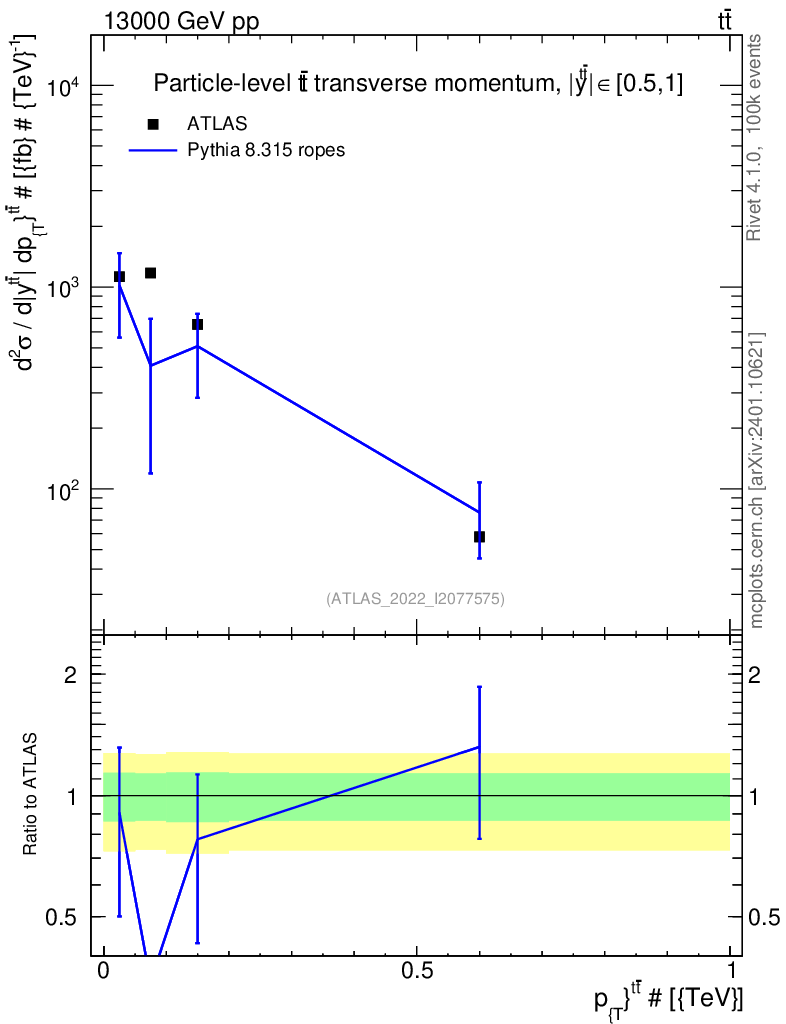 Lines: data, pythia8 8.315 ropes |