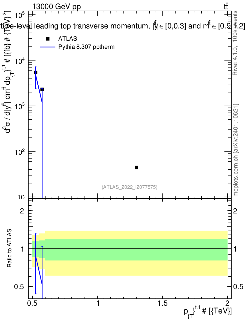 Lines: data, pythia8 8.307 pptherm |