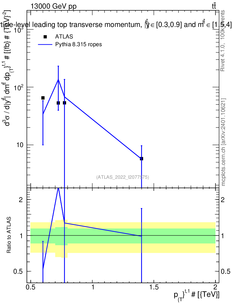 Lines: data, pythia8 8.315 ropes |