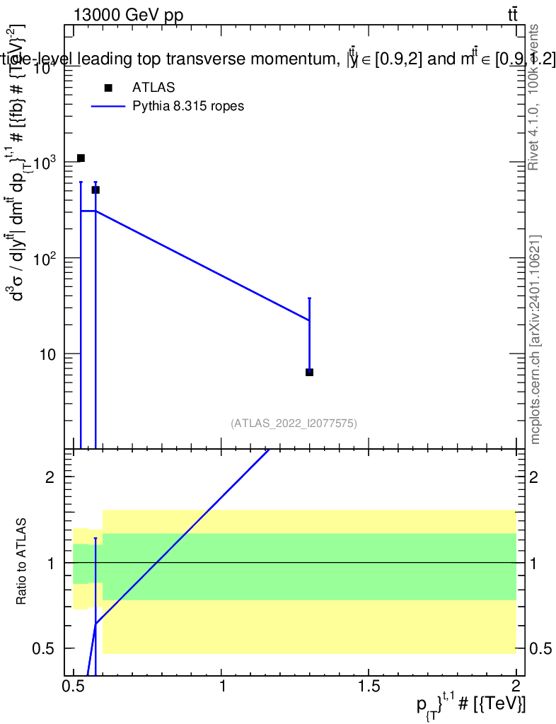 Lines: data, pythia8 8.315 ropes |