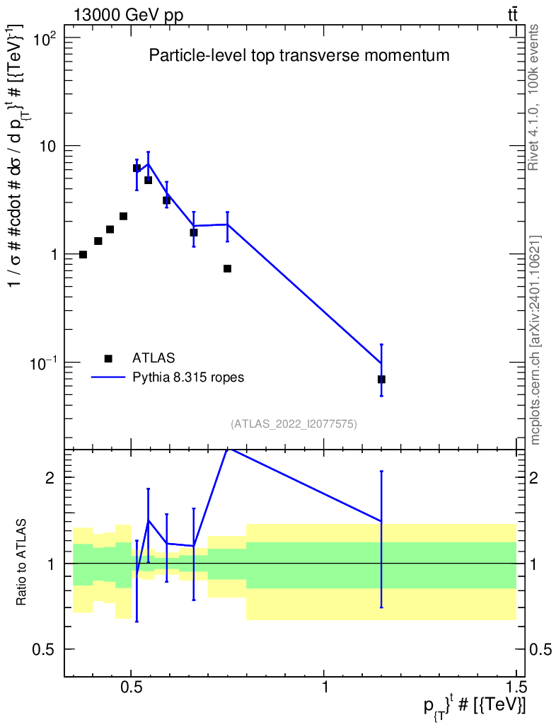 Lines: data, pythia8 8.315 ropes |