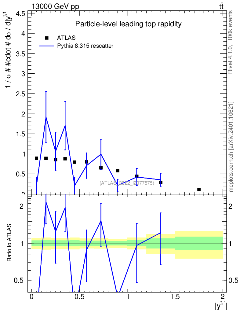 Lines: data, pythia8 8.315 rescatter |