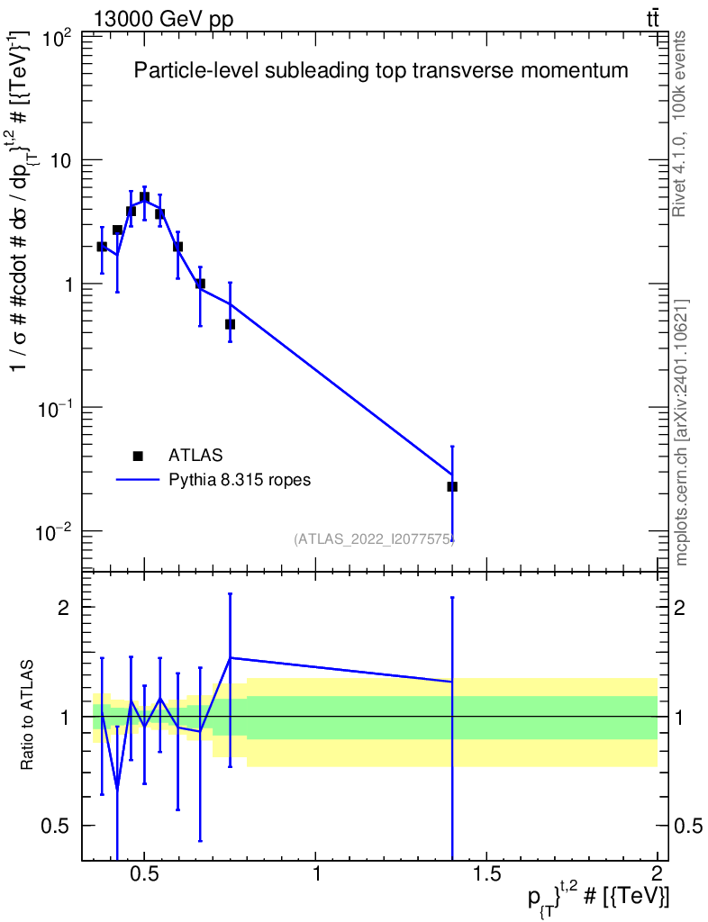 Lines: data, pythia8 8.315 ropes |