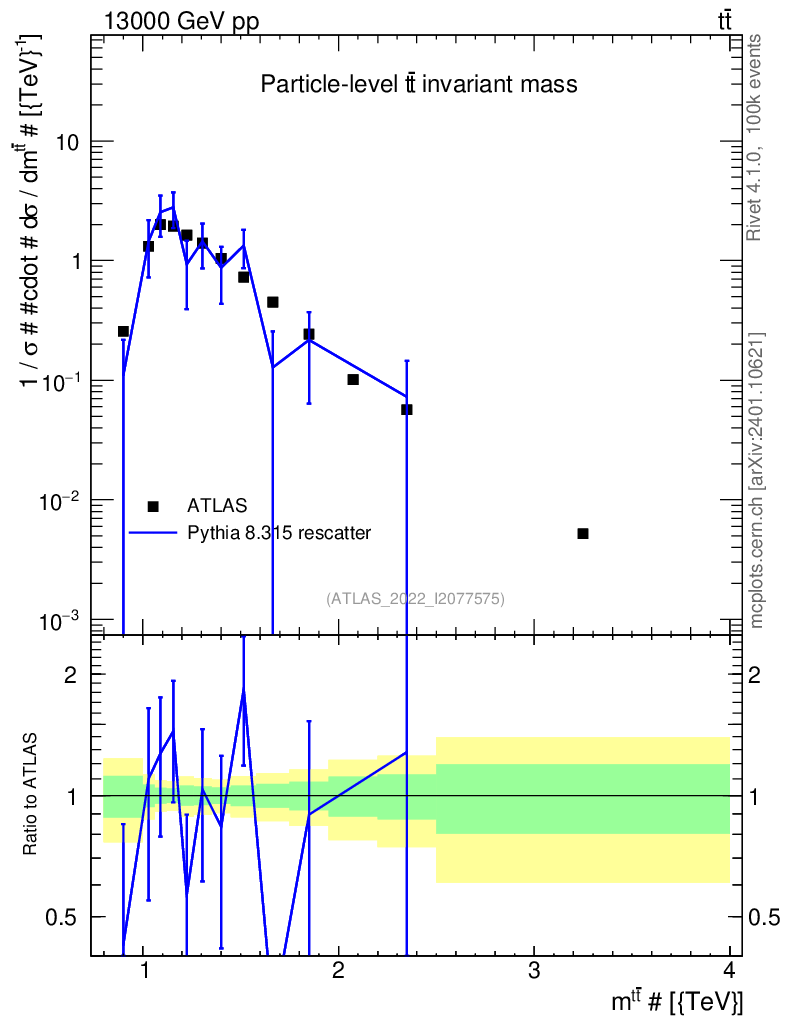 Lines: data, pythia8 8.315 rescatter |