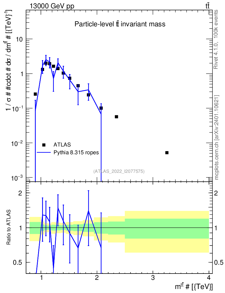 Lines: data, pythia8 8.315 ropes |