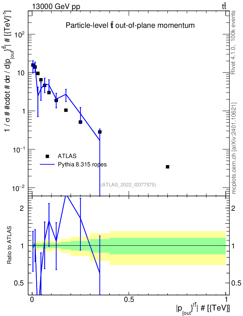 Lines: data, pythia8 8.315 ropes |