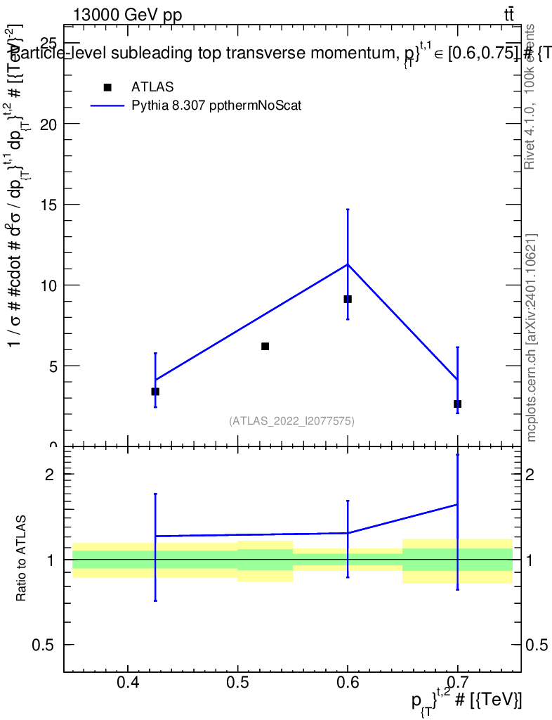 Lines: data, pythia8 8.307 ppthermNoScat |