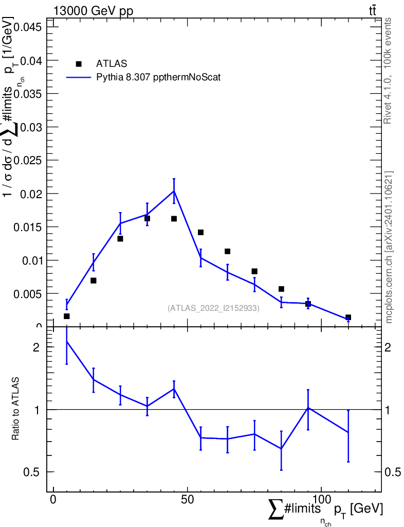 Lines: data, pythia8 8.307 ppthermNoScat |