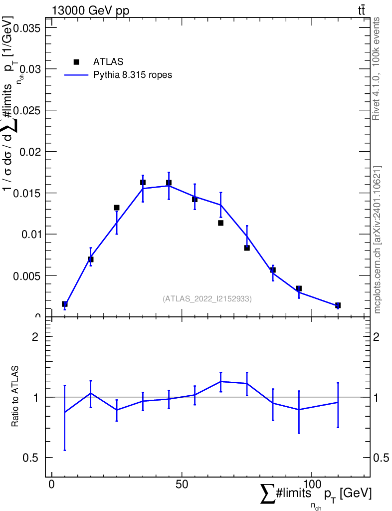 Lines: data, pythia8 8.315 ropes |
