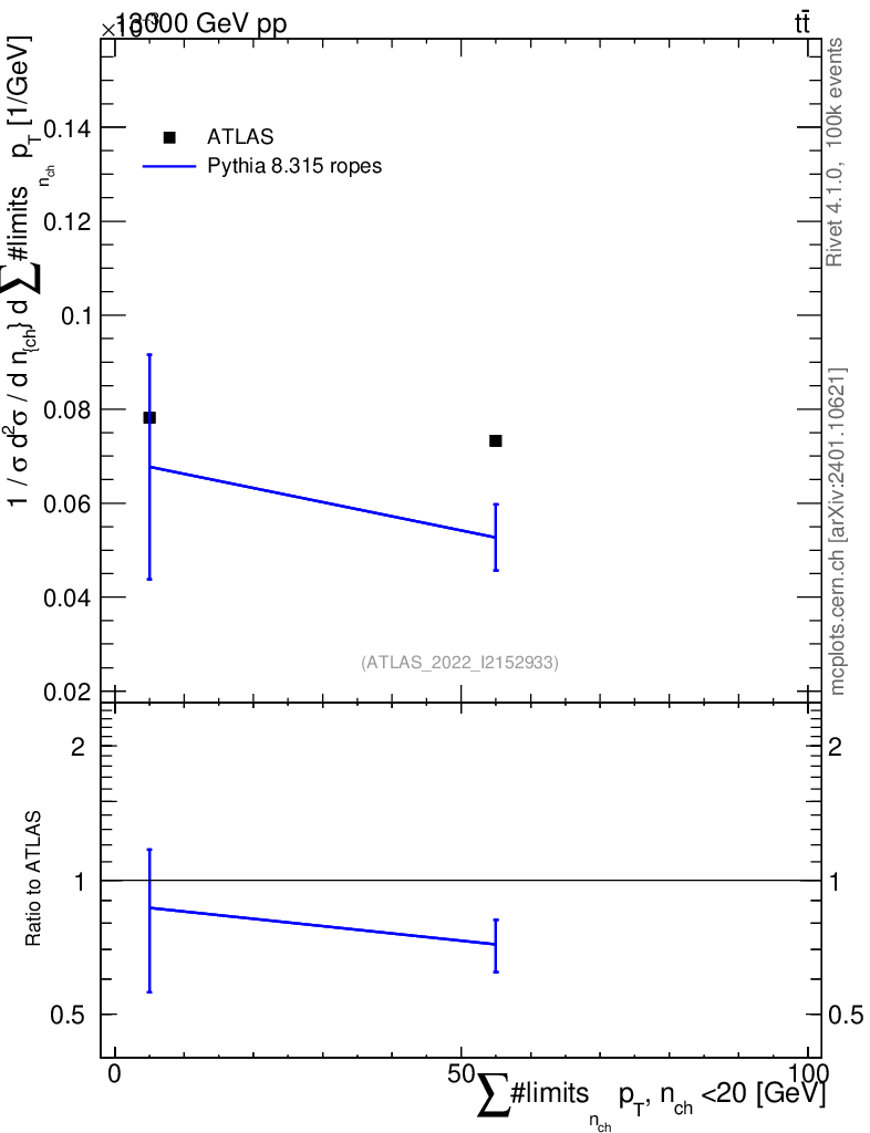 Lines: data, pythia8 8.315 ropes |