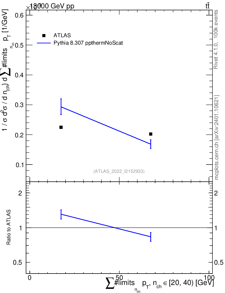 Lines: data, pythia8 8.307 ppthermNoScat |