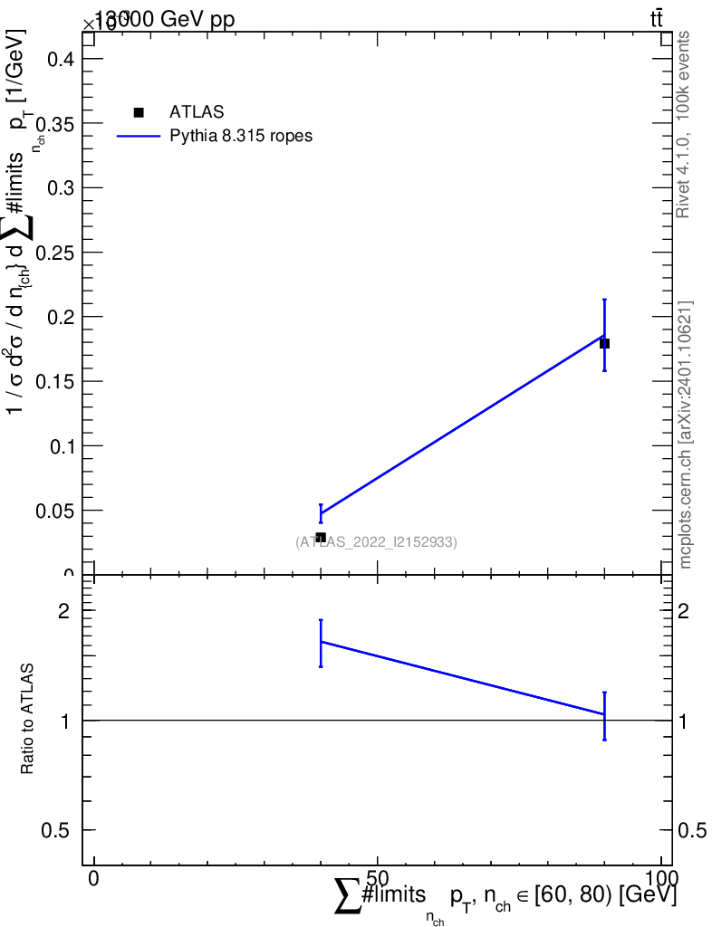 Lines: data, pythia8 8.315 ropes |
