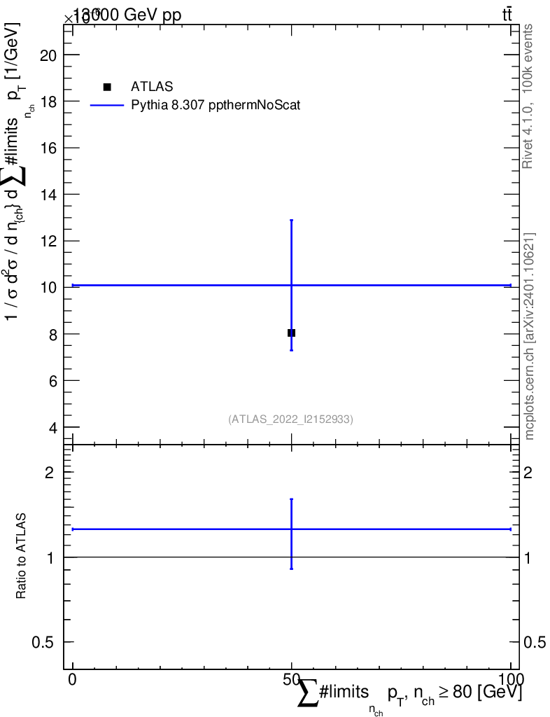 Lines: data, pythia8 8.307 ppthermNoScat |