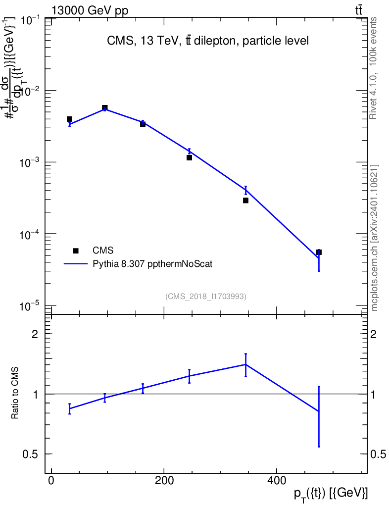 Lines: data, pythia8 8.307 ppthermNoScat |