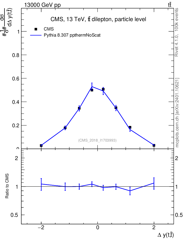 Lines: data, pythia8 8.307 ppthermNoScat |
