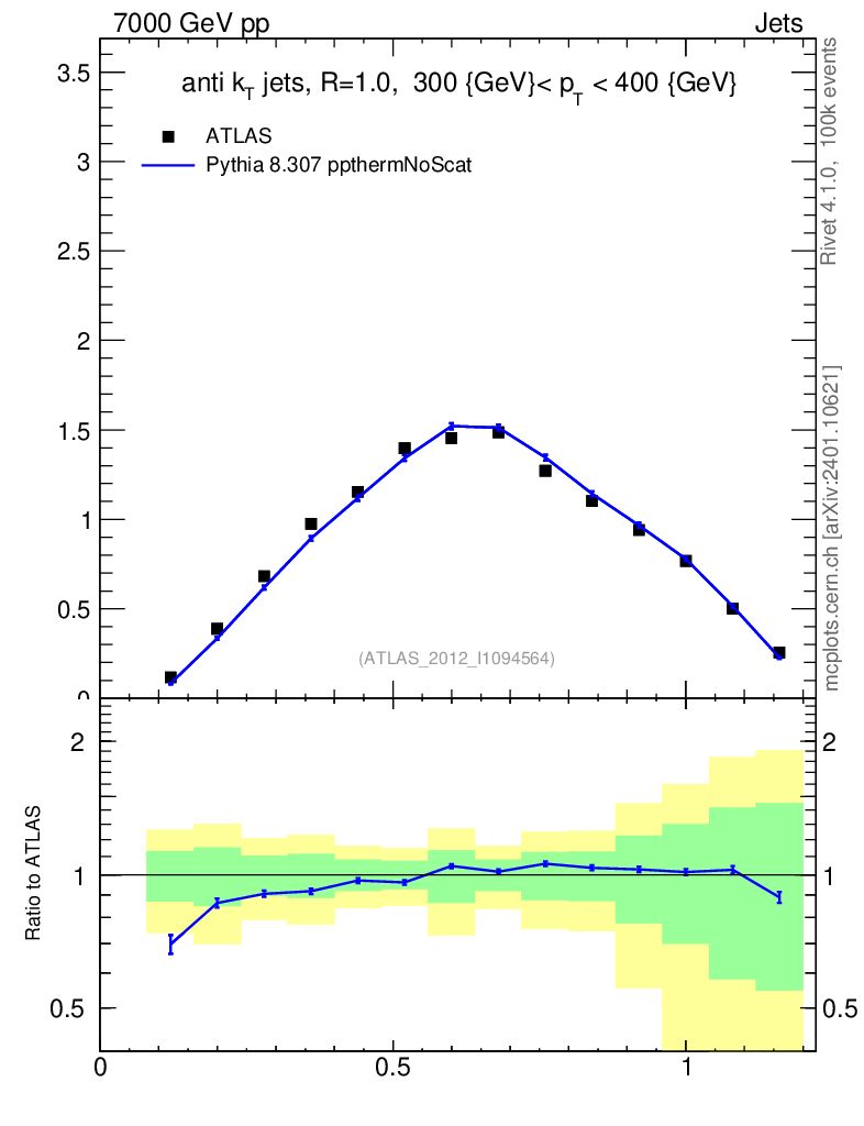 Lines: data, pythia8 8.307 ppthermNoScat |