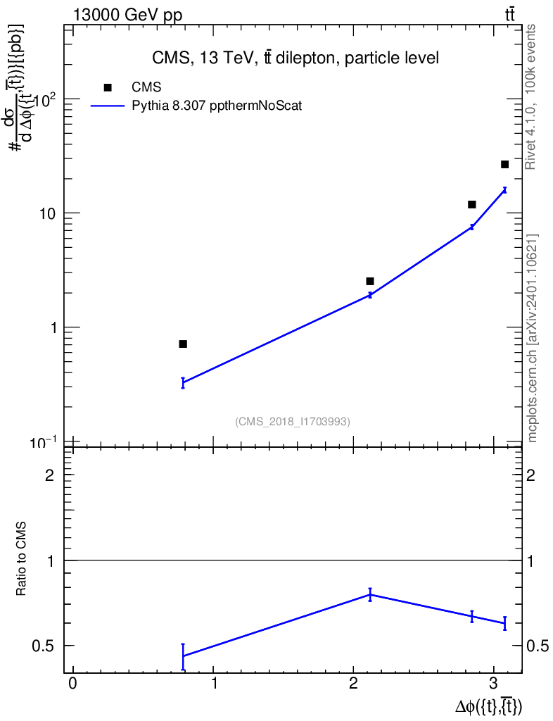 Lines: data, pythia8 8.307 ppthermNoScat |