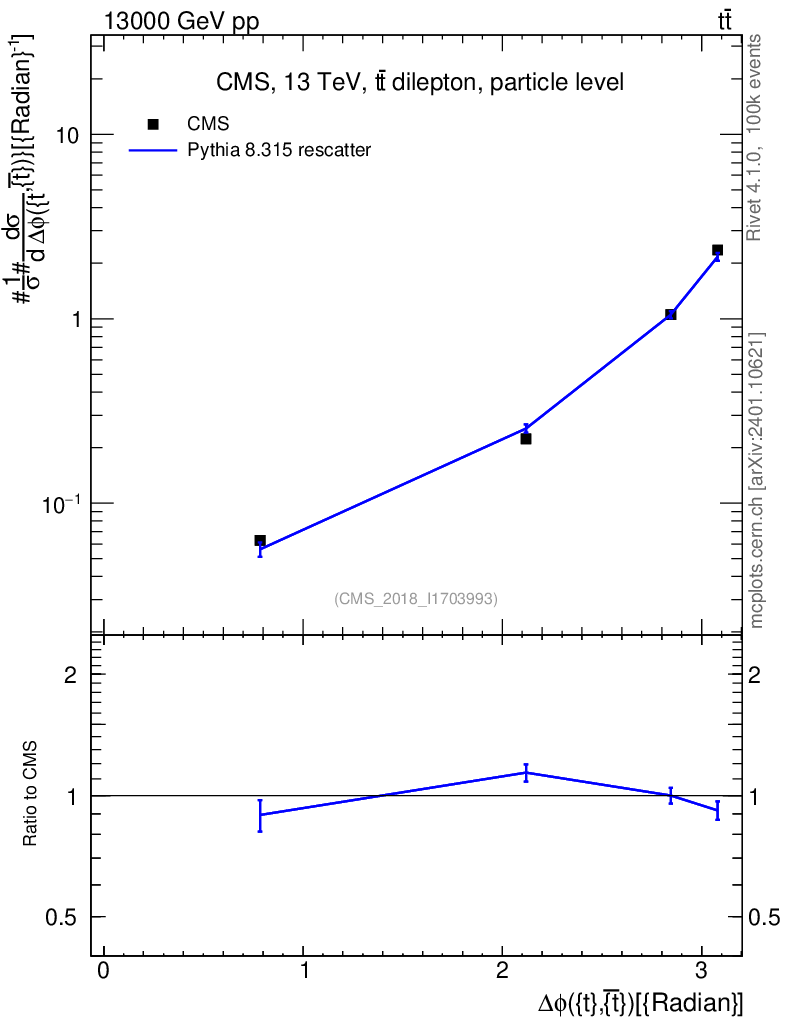 Lines: data, pythia8 8.315 rescatter |