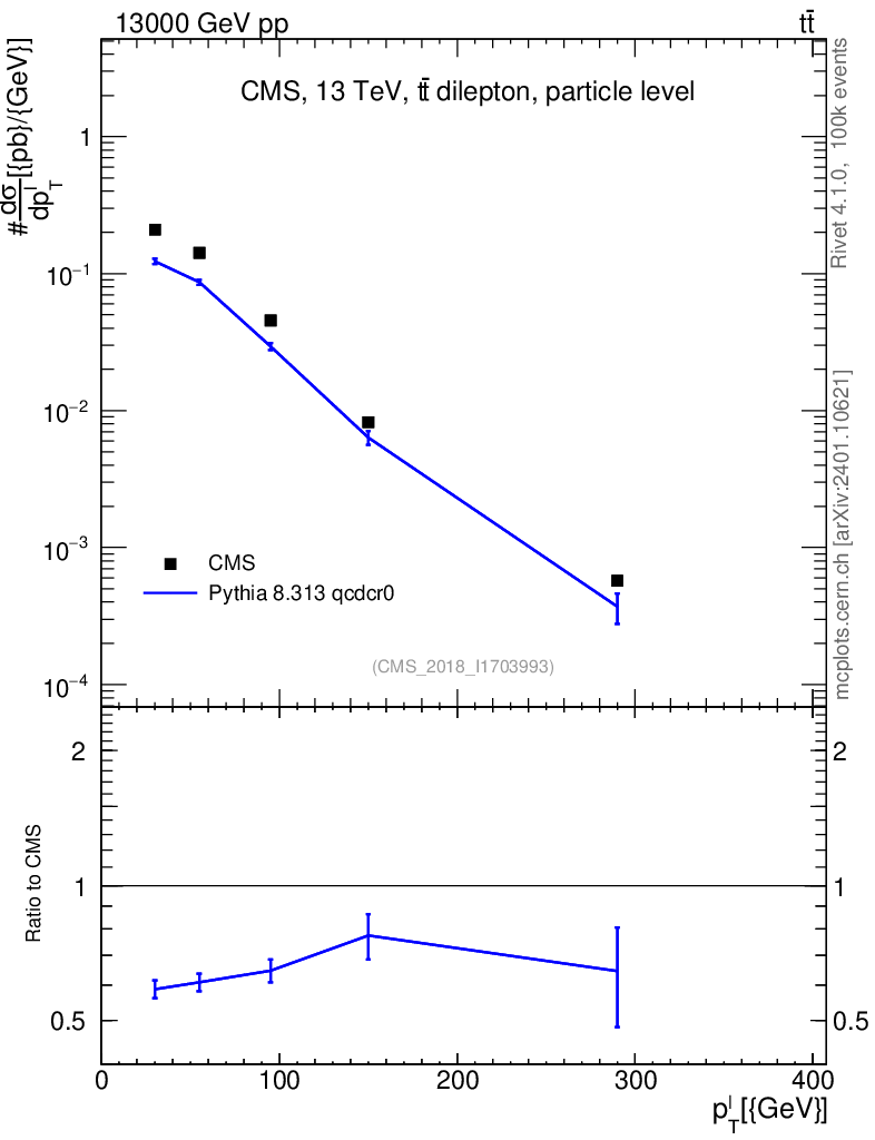 Lines: data, pythia8 8.313 qcdcr0 |
