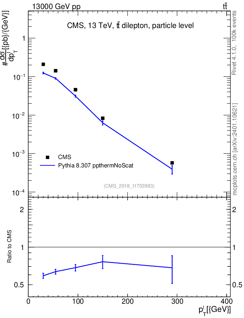 Lines: data, pythia8 8.307 ppthermNoScat |
